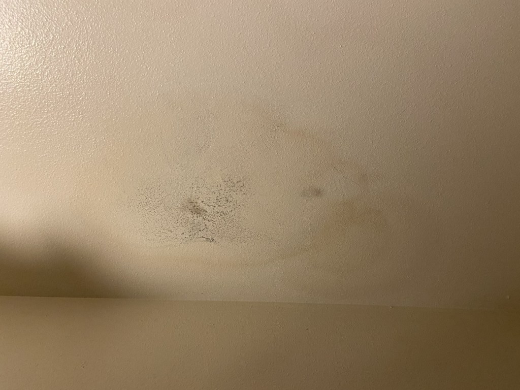 In the process of putting away laundry, I happened to look up and see that we had some water damage and mold on the ceiling of our closet. About a month ago, Donny had to patch a small hole in our roof from a dropped limb. We didn’t know how long the hole had been there and didn’t see any damage to the ceiling initially. Apparently our assessment was wrong and the insulation had retained some moisture. I knew we needed to remove the sheet rock and nasty insulation ASAP before the damage spread. I’ve patched small holes before but never something like this. I sent a message to a friend of mine who I knew was good at home repairs and asked for help. He came over and fixed the damage for me without hesitation. He even fixed another spot on the wall that needed patching.