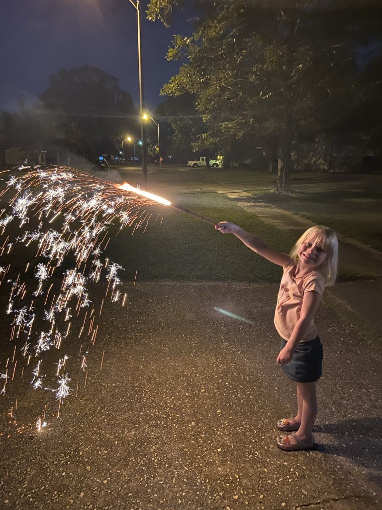 The truth behind the photo: This almost didn’t happen because I was being a party pooper and didn’t want to do fireworks. In fact, I very nearly stayed inside while The Hubs and the kids played. The Hubs ultimately won out (thankfully) and we all had fun. They lasted maybe 30 minutes and then we went inside. It was great.