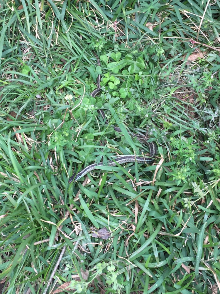 My Husband is an evil, terrible man. Not really but he did try to give me a heart attack this weekend. He asked me to come outside to look at some things that he was planning for the yard and to help him move some stuff around. Little did I know, he’d planted a dead snake next to one of the items that we were moving. I screamed and nearly peed my pants. I also said several choice words. He couldn’t stop laughing. He’d made it look so alive! Jerk. As you can see, it was super convincing.